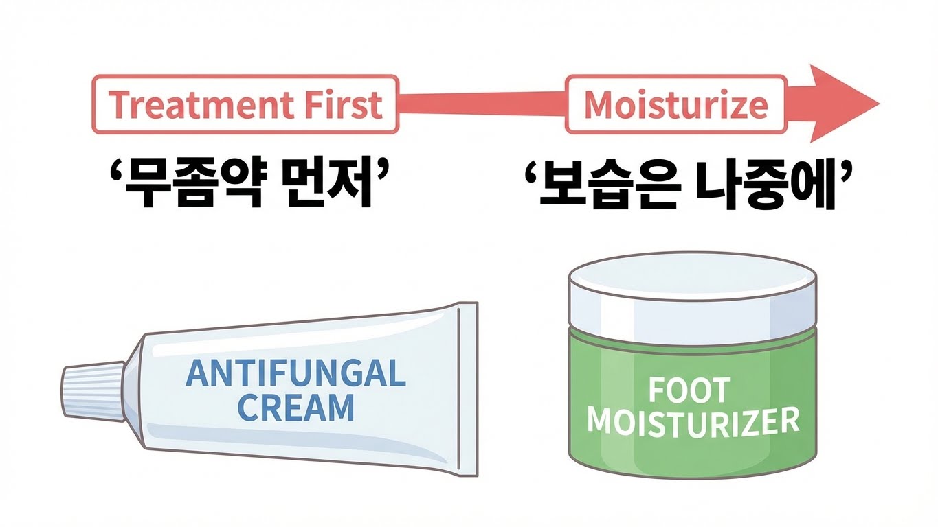 오히려 두꺼운 보습막이 곰팡이가 서식하기 좋은 습한 환경을 만들어 증상을 악화시킬 수도 있습니다. 따라서 반드시 '항진균제(무좀약)'를 사용하여 원인균을 제거하는 것이 먼저입니다.